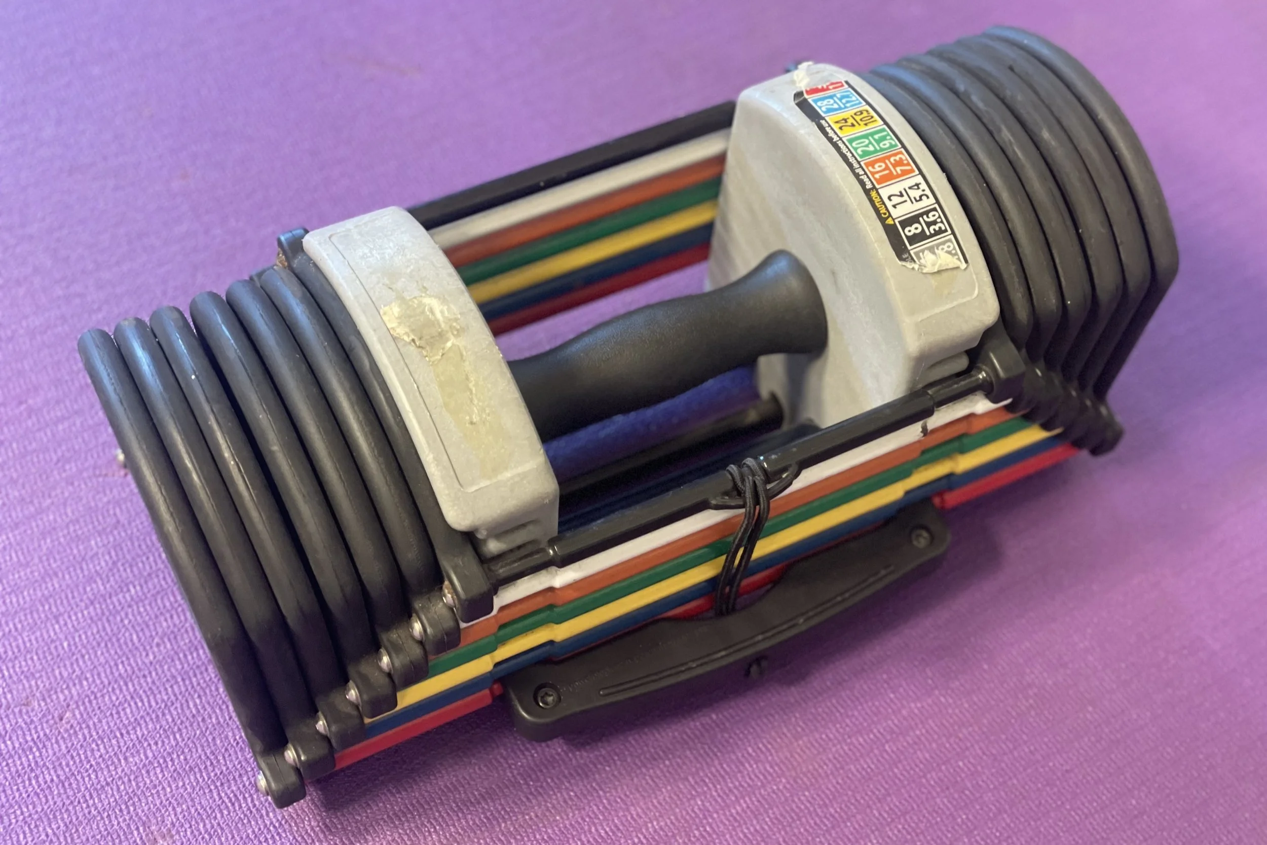 Pros: This style of adjustable weights has a more traditional dumbbell shape and are a smaller form factor than Powerblocks which can make the dumbbells easier to handle. Selecting a weight is easy and does not require memorizing any color coding. In my experience I’ve found the weights to be pretty sturdy.